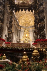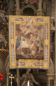 Cette fois, pour la messe de clôture, qui était aussi celle de l’Épiphanie (et non plus une messe nocturne), nous étions heureusement installés dans la basilique : nous n’avons donc rien vu de la fermeture de la Porte 🙂 mais nous avons suivi la messe en direct, et non pas via les écrans. Les illuminations de la basilique (totalement rénovées à base de led) sont fantastiques et permettent quelques photos 😉 après comme pendant…