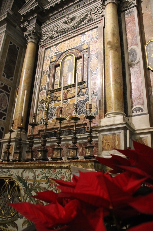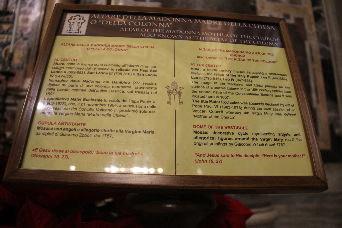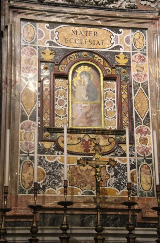 Nous photographions avec joie la chapelle où se trouve la Mater Ecclesia : mosaïque originale dont une reproduction a été installée sur la place Saint-Pierre par saint Jean-Paul II -en reconnaissance à la Mère de Dieu dont il a toujours affirmé qu’Elle l’avait protégé lors de l’attentat sur la même place.